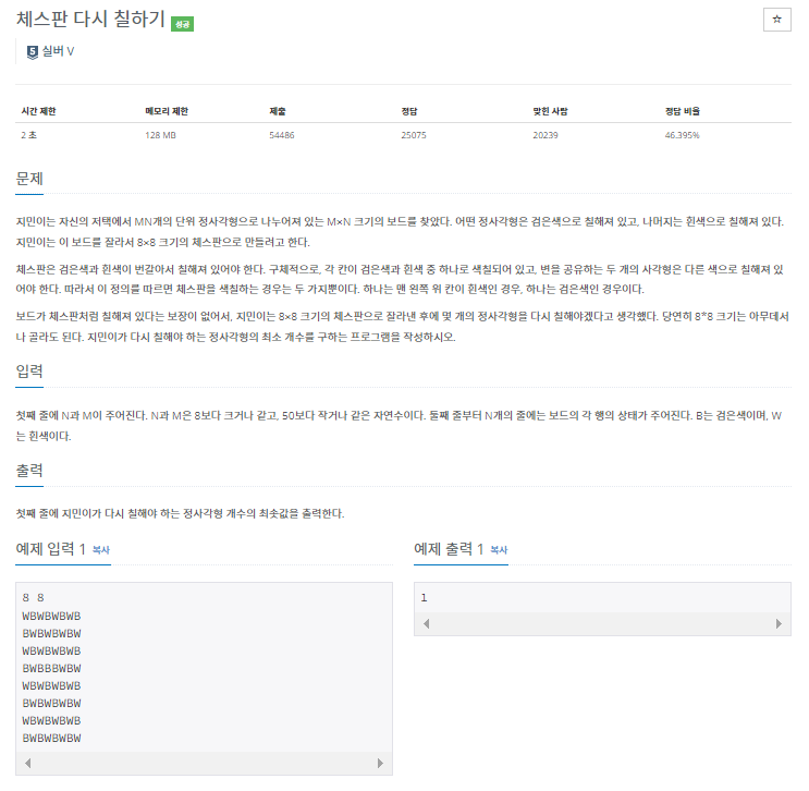 https://www.acmicpc.net/problem/1018