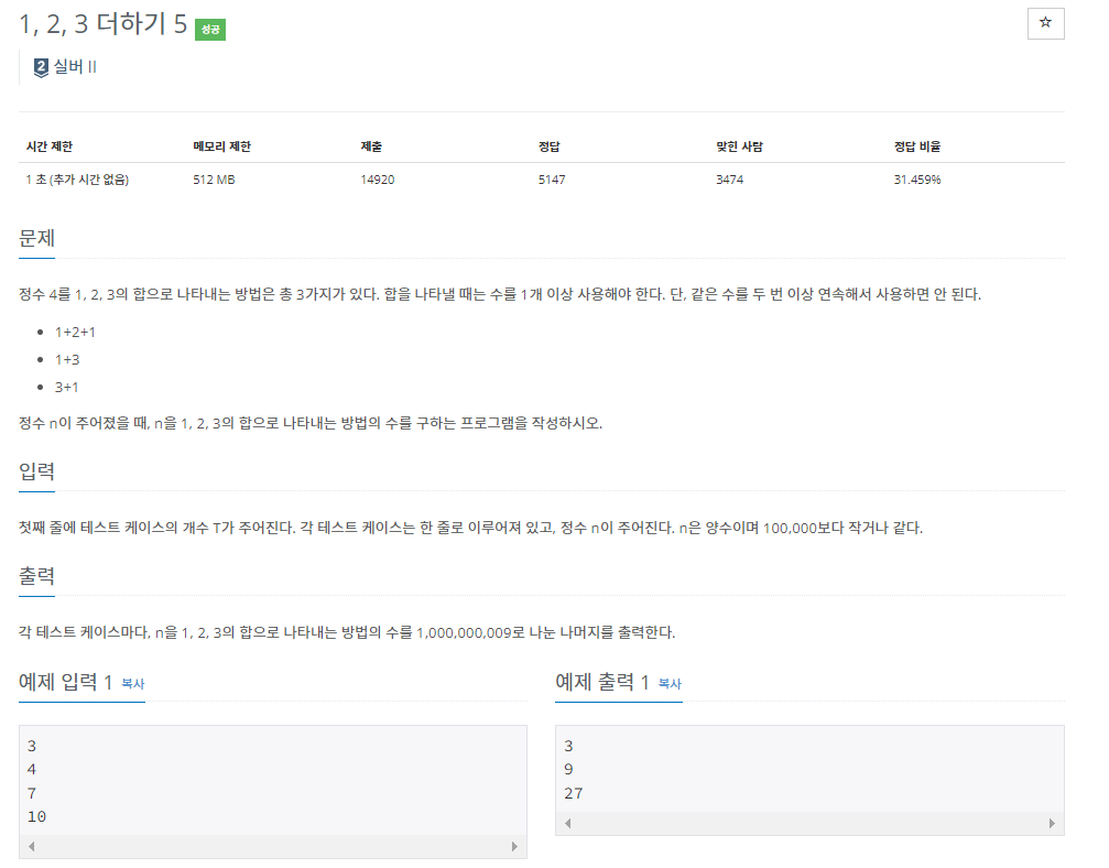 15990번: 1, 2, 3 더하기 5