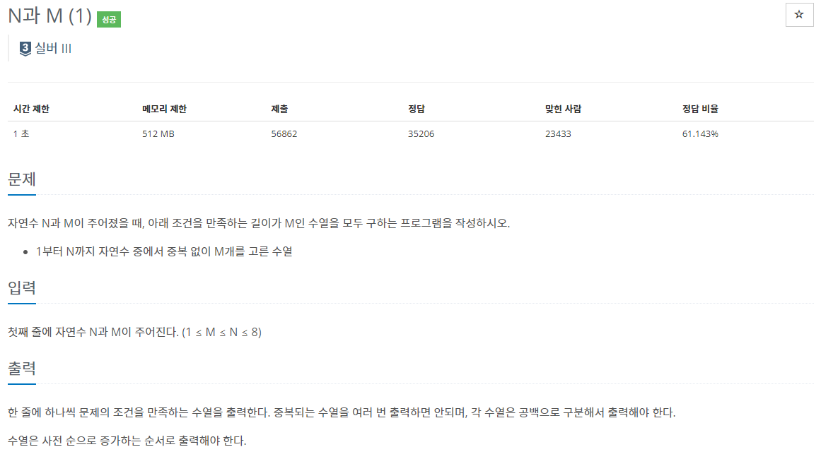| [백준] 15651번 N과 M (3) (C++) - backtracking (0) | 2022.04.15 |